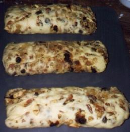 Prepare coating for when bread is done. Mix 3C sugar, 1C powdered sugar and 2Tbsp vanilla. Let set the next couple of days to become crumbly.